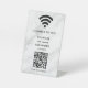Elevate your space with this minimalist modern table sign, offering a hassle-free way for guests to connect to your WiFi. Upload your personalized QR code and logo, and seamlessly display your network name and password in crisp white lettering. A stylish, functional touch for any setting—perfect for businesses, cafes, or events.