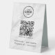 Elevate your space with a modern table sign that makes WiFi access seamless and stylish. Upload your custom QR code and logo, and add your network name and password in elegant white lettering. This eye-catching sign offers convenience for guests, clients, and customers, blending practicality with a sleek design.