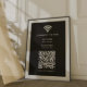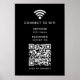 This sleek black poster print sign provides a clean and modern way for customers or guests to access your wifi network instantly. The design features a central QR code area that can be linked to your wifi details so users can scan to connect without typing a password. Enter your network name and any custom instructions that fit your need. The minimalist layout keeps everything readable which works well for cafes, salons, studios, offices, rental properties, pop ups or event venues. Because the template is fully editable, it adapts easily to branding updates or new wifi information. A practical and polished solution that helps streamline customer access and elevates your in person experience.