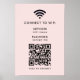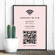 This blush pink poster print sign provides a clean and modern way for customers or guests to access your wifi network instantly. The design features a central QR code area that can be linked to your wifi details so users can scan to connect without typing a password. Enter your network name and any custom instructions that fit your need. The minimalist layout keeps everything readable which works well for cafes, salons, studios, offices, rental properties, pop ups or event venues. Because the template is fully editable, it adapts easily to branding updates or new wifi information. A practical and polished solution that helps streamline customer access and elevates your in person experience.