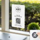 A simple custom connect to Wifi business window sign template in a modern minimalist style which can be easily updated with your QR code, network details, custom text and logo. Simply click 'personalize this design' to upload your company logo, web address and WIFI password information.