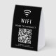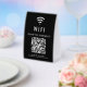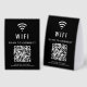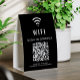 Make it easy for clients and guests to get online with this WiFi QR Code Table Sign, a sleek and practical addition to any café, salon, restaurant, Airbnb, office, or waiting room. Designed for convenience, this modern black paper sign lets visitors scan the QR code to instantly connect—no need to type long network names or passwords. Printed on durable, affordable paper, this lightweight tabletop display is perfect for placing on counters, reception desks, or tables. The clean black-and-white design with bold text and clear layout ensures the QR code is easy to scan and read at a glance. Customize it with your WiFi qr code, network name, and password or other text to create a polished, professional look that matches your space and keeps your guests happy.