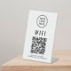 Modern and simple table top pedestal sign to allow your customers, clients and guests to easily connect to your wifi network. Upload your QR code and logo and add any other details, such as the network name and password.