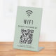 Modern and simple sage green table top pedestal sign to allow your customers, clients or guests to connect to your wifi network. Upload your wifi's QR code and add any other details, such as the network's name and password. Perfect for offices, hotels, vacation rental properties, etc.