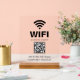 Modern white acrylic sign featuring a QR code for easy WiFi access. Perfect for small businesses, cafes, restaurants, offices, salons, and studios, this sleek and minimalist design allows customers or guests to quickly scan and connect to your network. Customizable with your logo and branding, ideal for desktops, counters, or store fronts. Create a professional, contactless, and convenient WiFi experience for your visitors.