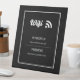 Simple and elegant Wifi sign for your business. This sign can be customized with your network ID and Password and can be posted in a coffee shop, bar, hotel lobby, bed and breakfast, AirBnB, and more.
