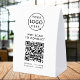This white paper table tent tabletop sign provides a clean and modern way for customers or guests to access your wifi network instantly. The design features a central QR code area that can be linked to your wifi details so users can scan to connect without typing a password. Above you can upload your business logo and below enter your network name and any custom instructions that fit your need. The minimalist layout keeps everything readable which works well for cafes, salons, studios, offices, rental properties, pop ups or event venues. Because the template is fully editable, it adapts easily to branding updates or new wifi information. A practical and polished solution that helps streamline customer access and elevates your in person experience.