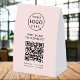 This blush pink paper table tent tabletop sign provides a clean and modern way for customers or guests to access your wifi network instantly. The design features a central QR code area that can be linked to your wifi details so users can scan to connect without typing a password. Above you can upload your business logo and below enter your network name and any custom instructions that fit your need. The minimalist layout keeps everything readable which works well for cafes, salons, studios, offices, rental properties, pop ups or event venues. Because the template is fully editable, it adapts easily to branding updates or new wifi information. A practical and polished solution that helps streamline customer access and elevates your in person experience.