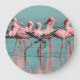 Wild African birds. A group of African pink flamingos wandering around the blue lagoon on a sunny day. Great design for wild bird lovers. It gives a distinctive shape to the design.