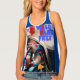 Women's All-Over Print Racerback Tank Top, White Piping, S