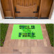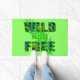 Doormat with the caption "Wild and Free" embellished with a pattern of jungle ferns and leaves, and a palm frond, in shades of leaf green and black