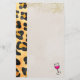 Stationery with a wild animal pattern and a cool looking wine glass outlined in thick black ink. The wine inside the glass is hot pink An eye-catching color contrast. Faux gold glitter is also sprinkled along the top of the design.