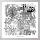 A fun hand-drawn black and white pen and ink illustration artwork of wild animals created by modern contemporary artist Julie Nicholls©.
