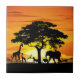 Wild Animals on African Savanna Sunset Ceramic Tile