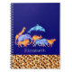 Spiral notebook designed with an exotic orange colored leopard print border along the bottom. Illustrated with a digital watercolor image of a herd of wild animals
