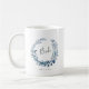 Custom mug features a blue and white watercolor botanical wreath with "bride" inscribed inside in hand lettered script. Personalize with your wedding date beneath. Pick up a matching set for your entire bridal party for a perfect "getting ready" photo the morning of the wedding! Matching Mother of the Bride, Mother of the Groom, Bridesmaid and Maid of Honor mugs available in our Wild Azure collection.