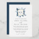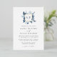 Our Wild Azure monogram wedding invitation features your initials, monogram or duogram at the top, nestled inside a square wreath of winter watercolor foliage in icy shades of blue with gold foil trim. A modern and elegant take on the botanical trend for winter weddings in chic blue and white.