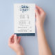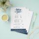 Chic botanical flyer card design displays your services, price list or business information beautifully. Design features a watercolor foliage logo in navy and sky blue, framing your name and/or business name on a crisp white background with harbor blue trim. Includes four customizable headings and body text fields, and space for your business contact information along the bottom. To adjust layout, enter your text and then use the Customize function to change positioning and font sizes.