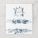 Chic winter botanical place card design features a top and bottom border of watercolor foliage and leaves in icy shades of blue. Space provided for guest name and table number. Cards reverse to reveal a matching botanical frame with your initials and wedding date inside. Designed to match our Wild Azure wedding and event collection.