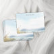 An elegant, modern classic wedding or couple note card with a nautical theme, featuring a dreamy watercolor landscape painting of a wild beach corner with tufts of grass and a beach fence, gentle waves and a blue sunny sky, with nautical themed stripes in coordinating colors on the back. It also features classic typography with a modern touch. Perfect for a spring, summer or fall wedding at the beach, by the sea, by a lake or anywhere there is water - and, perhaps, beach fences, for a couple who loves the beach, the ocean, the sea, nature, marine environments, art and painterly styles and modern classic, updated traditional and minimalist simple but elegant. Also a lovely personalized stationery choice for an established couple, for sending thank you notes, gifts etc.
