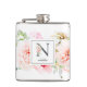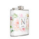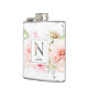 Elegant watercolor blush pink, burgundy and white flowers and delicate garden greenery with adorned letter "N" in slate gray, monogram flask. Flask features a single template text line to personalize with name.