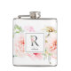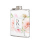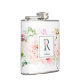 Elegant watercolor blush pink, burgundy and white flowers and delicate garden greenery with adorned letter "R" in slate gray, monogram flask. Flask features a single template text line to personalize with name.