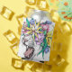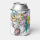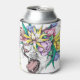 Wild cat, floral wreath, cartoon. can cooler