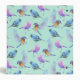 A multicolored watercolor pattern with various wild and exotic birds. Some have their wings extended, flapping their wings others standing still. Colors include baby blue, pastel pink, purple and a warm golden orange color on their chest. The colors beautifully mix and blend together. A pretty and unique artistic design. Background is a pale mint green. The center has a teal green circle with a white inner border, personalize with your own text.