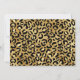 Bachelorette party save the date card with a stylish pattern featuring exotic leopard spots in black on a gold background. A black martini glass silhouette adds some party flair to the design.