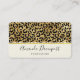 Business cards with a stylish pattern. Exotic black leopard spots on a gold background. Wild yet elegant style. The bottom portion of the business card has a cream colored border, a faux gold foil stripe and your personalized text inside.