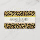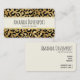 Business cards with a stylish pattern. Exotic black leopard spots on a gold background. Wild yet elegant style. The middle portion of the business card has a cream colored border, faux gold foil stripes along the border and your personalized text inside.