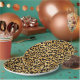 Paper plates with a stylish pattern. Exotic black leopard spots on a gold background. Wild yet elegant style.