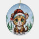 Wild Feline Lovers Woodland Wildlife Kitten ceramic ornament featuring a fun blend of leopard spots with this cute Xmas cartoon graphic with personalizable santa hats. Customize by changing the name. Perfect customizable gift for any kitty cat enthusiast or animal print fan. Two sided design ensures your tree always looks festive & complete. Add a unique touch & holiday spirit cheer to your décor with this custom one-of-a-kind, purr-fect Christmas season keepsake! 🐆🐈🐾