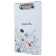 The Wild Floral Clipboard on a dusty blue background offers a beautiful blend of natural and rustic charm. Designed with wildflowers in subtle, earthy colors over a soothing dusty blue backdrop, this clipboard adds a unique and stylish aesthetic to your paper organizing. The floral design is intricate yet understated, providing an elegant look that is both fashionable and functional. Perfect for those who love nature-inspired accessories, this clipboard is a personalized way to showcase your style.