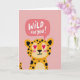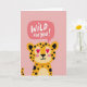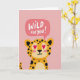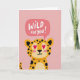 This Valentine’s Day card features a charming cheetah or leopard centered on a soft pastel pink background. The animal’s golden yellow face is dotted with bold black spots, giving it a warm, friendly look. Its eyes are shaped like bright red hearts, with a light blush on its cheeks and a small smile that adds to the affectionate feel. Above the head, a coral-pink speech bubble floats near the top of the card and reads “WILD FOR YOU!” in white, hand-lettered script that’s easy to read. The mix of heart details, gentle colors, and sweet expression makes this card a lovely way to share love with a partner, crush, or someone who makes your heart race ❤️
