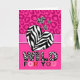 © 2011 Socialite Designs. Say I love you with this wild zebra print hearts and hot pink leopard pattern card. Write your own special message on the inside.