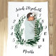 Surround your sweet babe in a wreath of rich forest green botanical foliage with this lovely photo backdrop featuring baby girl's name in hand lettered calligraphy script, and milestone months 1-12 around the perimeter of hunter green leaves.