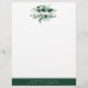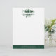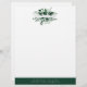 Elegant botanical letterhead design displays your name and/or business name framed by a watercolor foliage border in shades of hunter and forest green. Add your business contact information along the bottom in white on coordinating dark blue.