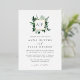 Our Wild Forest monogram wedding invitation features your initials, monogram or duogram at the top, nestled inside a square wreath of winter watercolor foliage in shades of hunter, emerald, and forest green with gold foil trim. A modern and elegant take on the botanical trend for winter weddings in chic green and white.