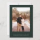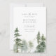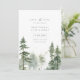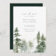 Elegant watercolor forest pine tree scene, wedding save the date card. Features, single photo backing on coordinating green background.
