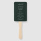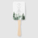 Elegant Watercolor Forest Pine Tree Nature Scene, wedding program hand fan. Black and white typography with coordinating white and green background colors.