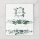 Chic winter botanical place card design features a top and bottom border of watercolor foliage and leaves in rich shades of hunter green. Space provided for guest name and table number. Cards reverse to reveal a matching botanical frame with your initials and wedding date inside. Designed to match our Wild Forest wedding and event collection for elegant winter or spring weddings.