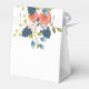 Lovely wedding favor box in soft color scheme of apricot peach and marine blue on a crisp white background. Original illustration of floral blooms adorn the top front and back of the box. Elegant handwritten look for the fixed text of "Thank you" adds style and grace. Personalize with the bride and groom names and wedding date. Perfect for an outdoor, spring, summer, evening, or garden wedding.