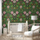 Wild garden in green wallpaper