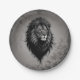 Wild Grace: striking portrait of a lion in black and white tones. The lion's thick, flowing mane is the centerpiece of the image and each hair appears to be carefully crafted, giving the image a dynamic depth. The lion's eyes shine in a warm amber hue that creates a fascinating contrast to the otherwise monochrome color palette. The combination of the bold black and white tones as well as the bright amber creates a harmonious balance between strength and grace.