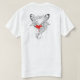 Inspired quote in shades of red by Tenesee Williams on the back "A Prayer For The Wild At Heart Kept In Cages." contrasts nicely with the white of the shirt. The back has a black and white cartoony drawing of a Fairy with Monarch Wings and stars entwined in her hair carrying a heart with long gracefull wings. The heart has been painted in red with watercolors. The fairy's name is Mel, short for Melpomene, muse of Tragedy. She's an old invention, and I'm fond of her for her simplicity and subtlety.