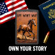 This lighter features a highly detailed, high-relief image of a muscular, glossy brown stallion with a flowing dark mane and tail, caught mid-run. The horse is running hard through an arid, brown desert landscape, kicking up dust. The dimensional motivational text "LIFE WON'T WAIT" is carved prominently across the top. The background is an orange-brown scene of rolling hills and a sunlit sky. The foreground features rocky elements creating a textured path. The entire background landscape has a luxurious, soft-leather look. This artwork highlights the simple, yet profound acts of comfort and support provided by farming professionals, symbolizing warmth and peace. The highest quality print and artwork used on the surface is so exceptional it creates a stunningly realistic tactile illusion; you could easily mistake the textures for genuine leather. The entire design is set on a matte black lighter casing. The design may look real due to the high detail in the artwork.
