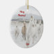 Lightweight, smooth, pure white ornament with nice sheen. Perfect size to be seen from across the room ... and to attract closer inspection! Price was great for ordering enough for the whole family! Clear, bold black design just as requested. Matches the order exactly. Just so nice!