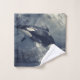 Majestic killer whale in the wild, jumping over the icy waters of a snowy landscape.