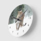 Wild Leopard in Snow Round Clock